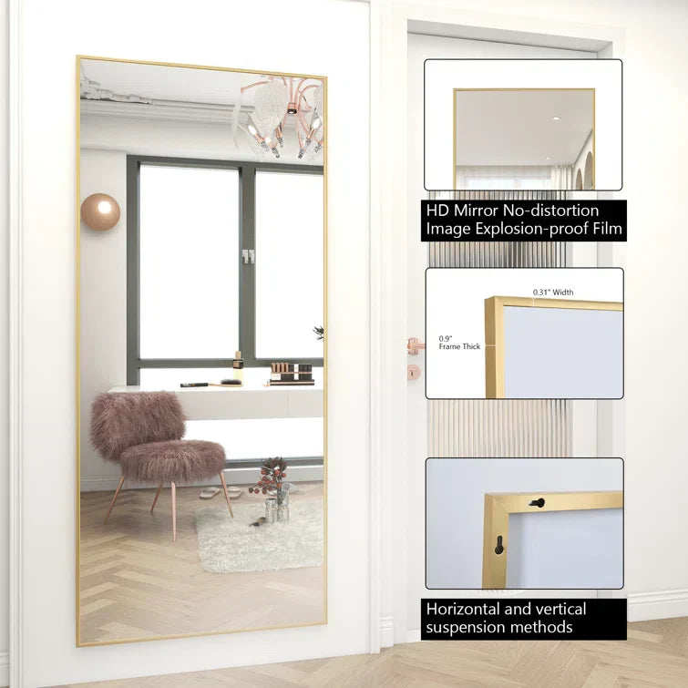 High-quality mirror: Made of an aluminum frame and shatterproof glass with an explosion-proof membrane, the rectangle mirror is high-definition and long-lasting.